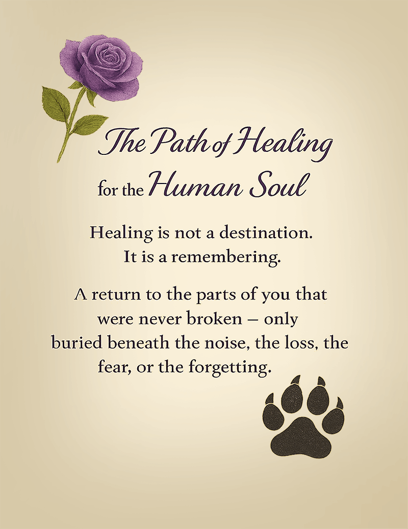 Welcome, Welcome, It is no happenstance nor coincidence that at just this time you have been led here... Your spiritual journey, whether a new path or one well worn, traveling alone or with a beloved pet(s) has brought you to this haven for your spirit that you may explore in depth, the questions, the dimensions, the calls of your soul... Breathe deeply, grab that beloved paw, hoof, feathered wing & settle in to experience depths of connection that will pull, push & guide you in developing a deeper relationship with yourself, the animal kingdom & the Divine...